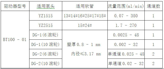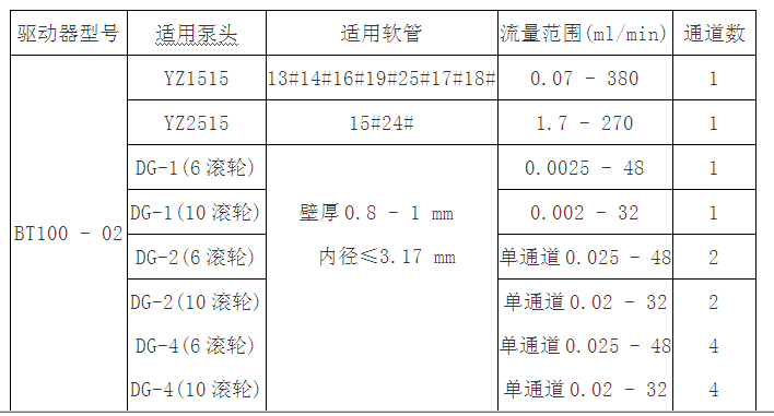 蠕动泵BT100-01、BT100-02系列