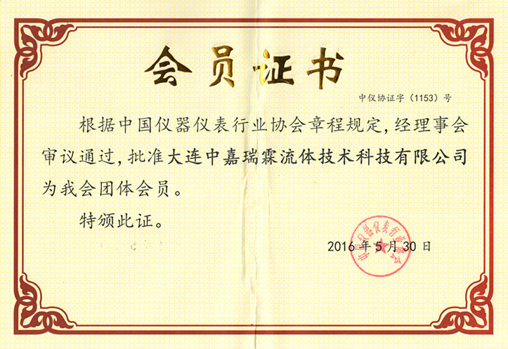热烈庆祝“大连中嘉瑞霖流体技术科技有限公司”成为中国仪器仪表行业协会会员!!!