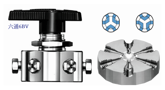 1.极其方便的流路设计方案,可以选择从一个入口有选择的转到六个出口,或者从六个入口转到同一个出口