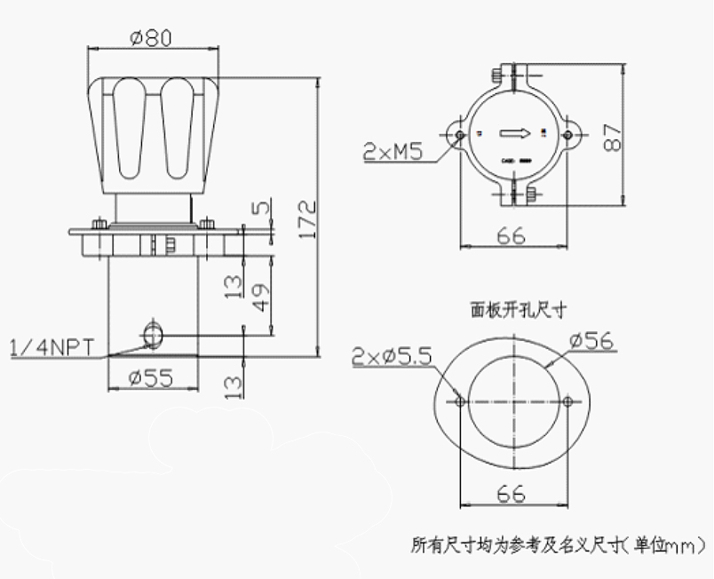 *阀体螺纹:进出气接口 1/4''NPT内螺纹,压力表接口 1/4''NPT内螺纹;